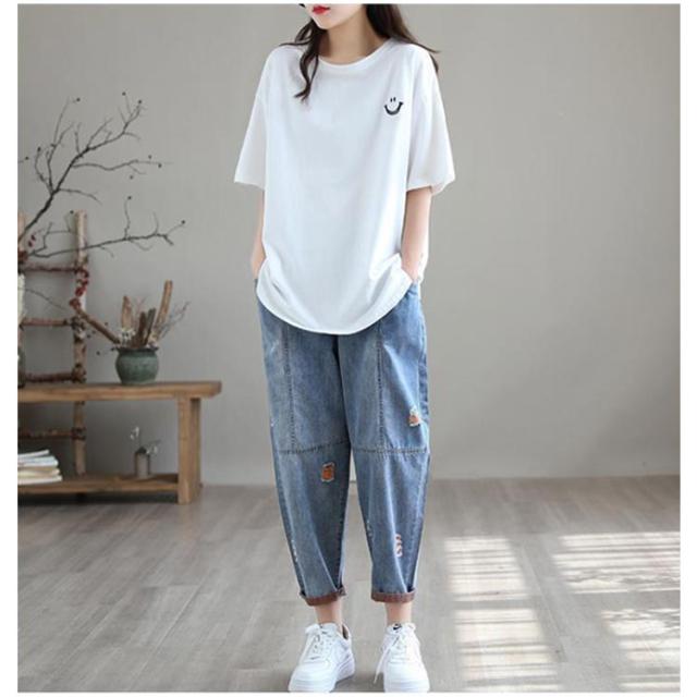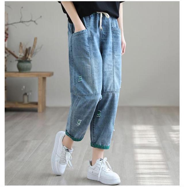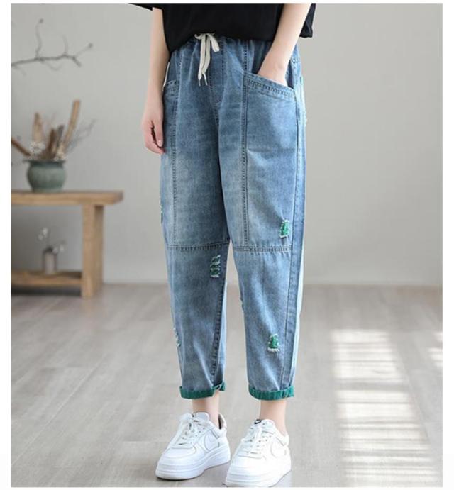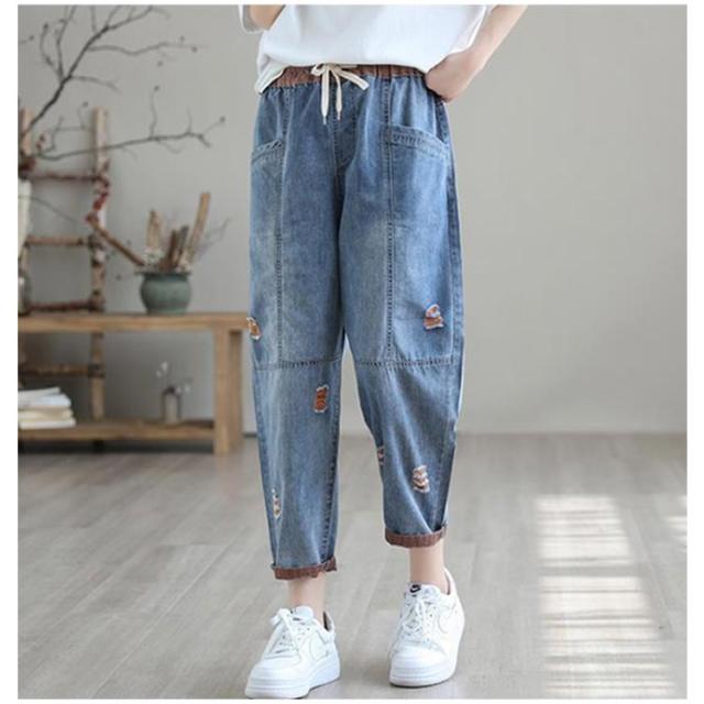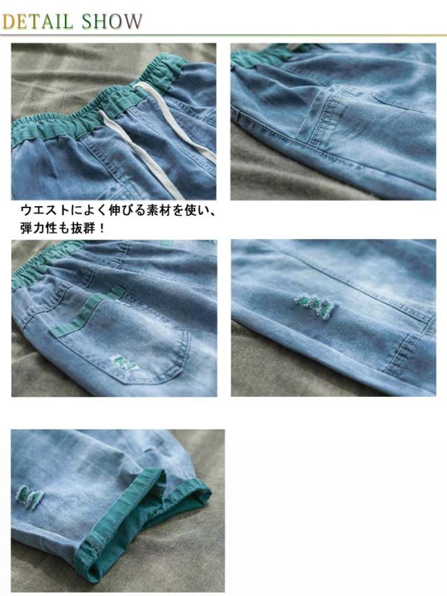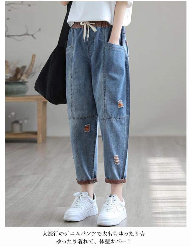 秋 デニム ダメージ デニムサルエルパンツ 春 ボトムス サルエルパンツ 個性派 夏 レディース カジュアルパンツ ゆるパンツ ゆったり 大きいサイズ デニムパンツ ナチュラル 可愛い 体型カバー 森ガール デニム カジュアル