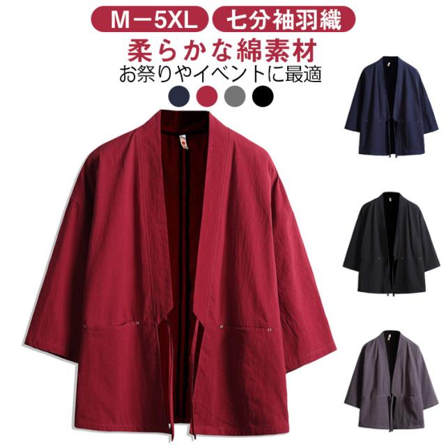 羽織 作務衣 五分袖 シャツ 半袖 メンズ 半纏 法被 春 夏 和風 着物 男性用 甚平 作務衣 作務衣 半被 男性用 大きいサイズ カジュアル 和服 七分袖 長袖 中国 綿 おしゃれ トップス M−5XL