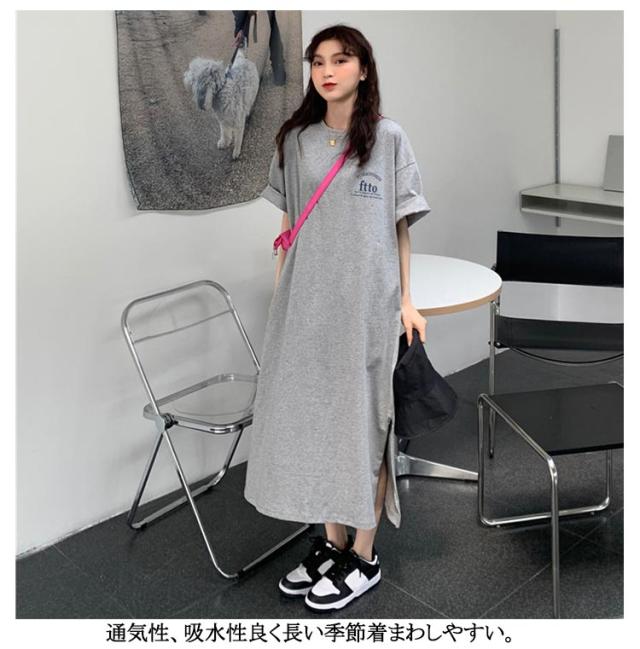 送料無料 ゆったり レディース ビッグt ゆるtシャツ サイドスリット プルオーバー 半袖ロンt Tシャツワンピ ドロップショルダー ロングtシャツ おしゃれ 部屋着 ロンティー ティーシャツ トップス 春夏 速乾 ビッグtシャツ 送料無料 レッスン着 女性用
