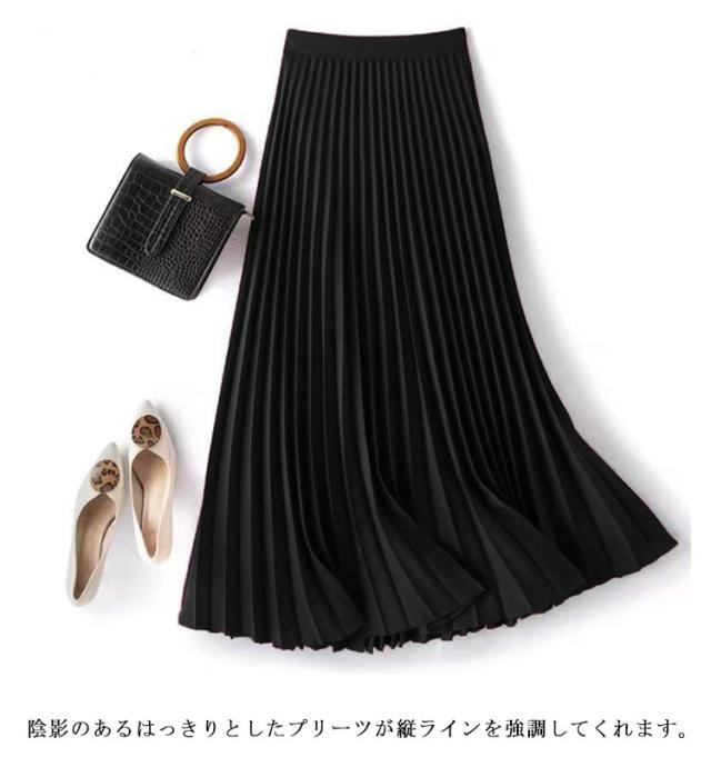 | トレンドのプリーツスカート 陰影のあるはっきりとしたプリーツが縦ラインを強調してくれます。 ゴムで履きやすさもあり、きれいめにもカジュアルにも幅広く合わせやすい一枚。 通勤スタイルや日常のお出かけにも活躍。着回ししやすい。これからの季節、重宝すること間違いなし! | |