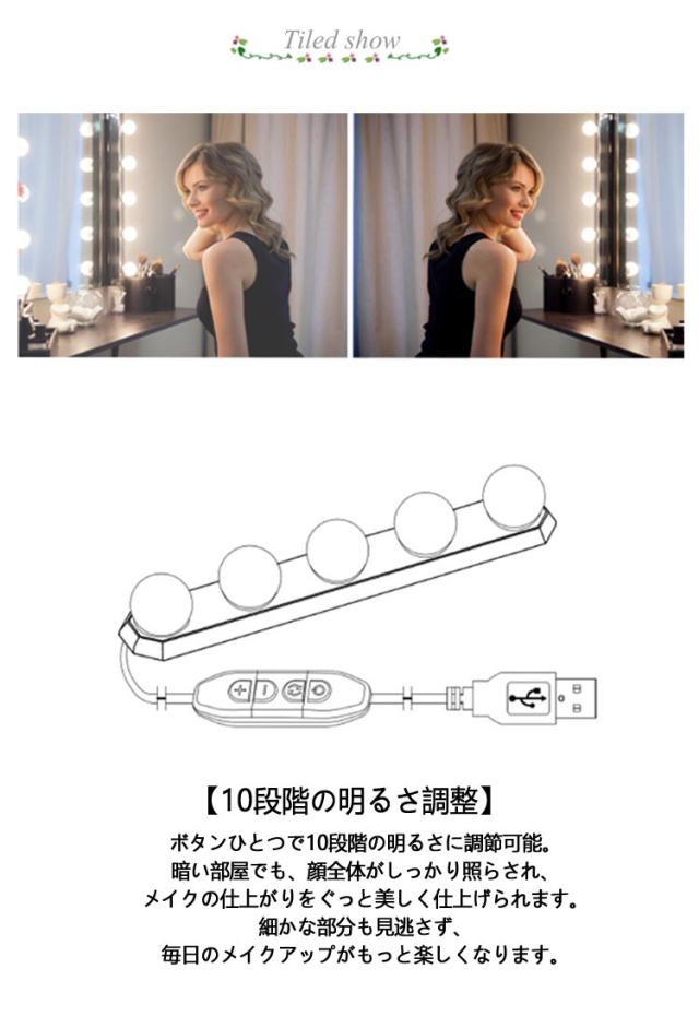 簡単 穴開け不要 取り付け LEDミラーライト 女優ライト 10段階調光 女優ライト バー型LEDライト 女優ミラー 目に優しい メイクライト 鏡に付けるライト 3段階調色 ledメイクアップライト バニティミラーライト 高輝度 USB給電式 省エネ