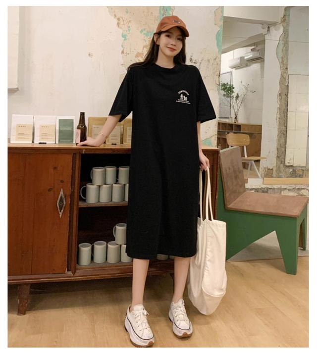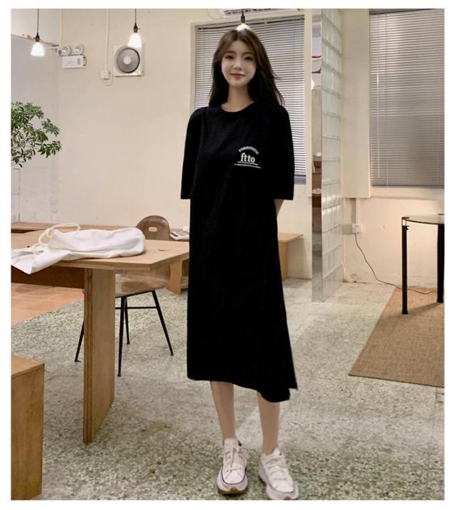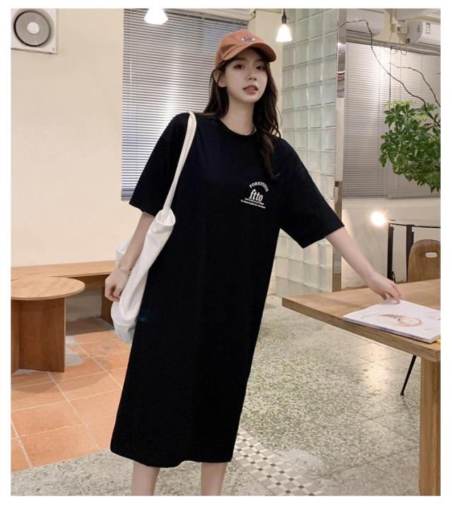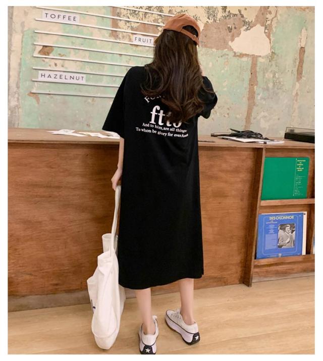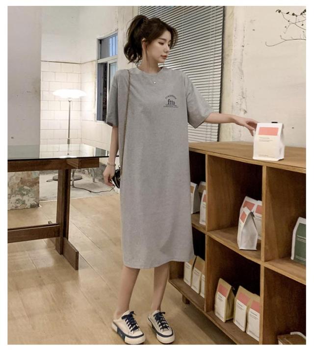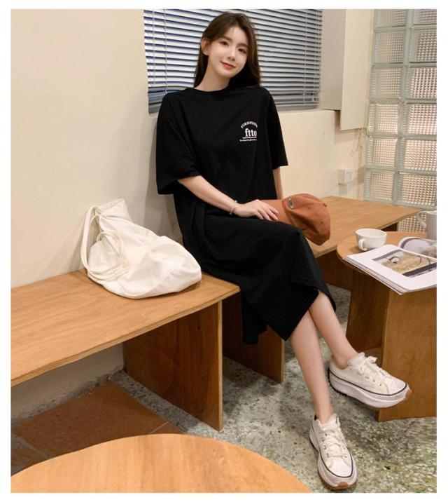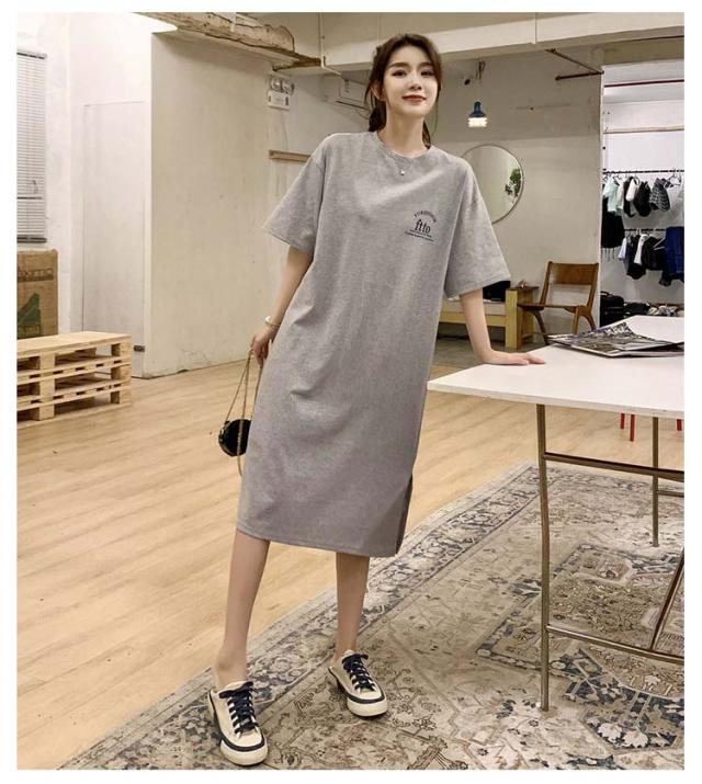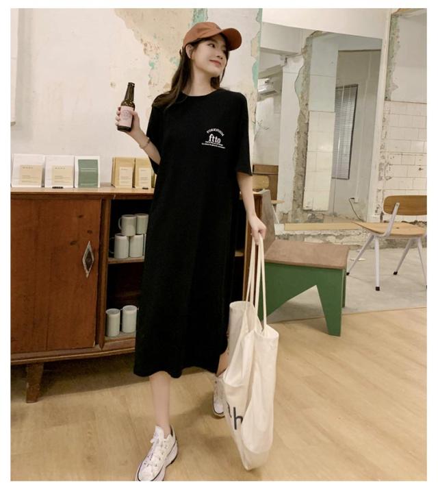 半袖 夏 半袖 春 大きいサイズ サイドスリット かわいい Tシャツワンピ ゆるワンピ レディース Tシャツ 部屋着 ロング丈 ルームウェア ロングワンピ 体型カバー ゆったり 大きめ プリント 英字ロゴ 楽ちん ワンピース