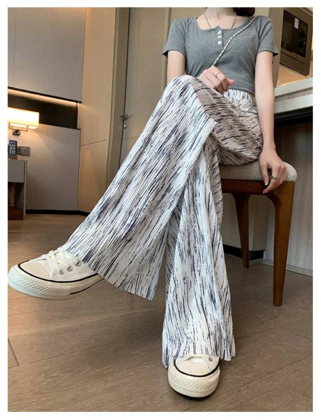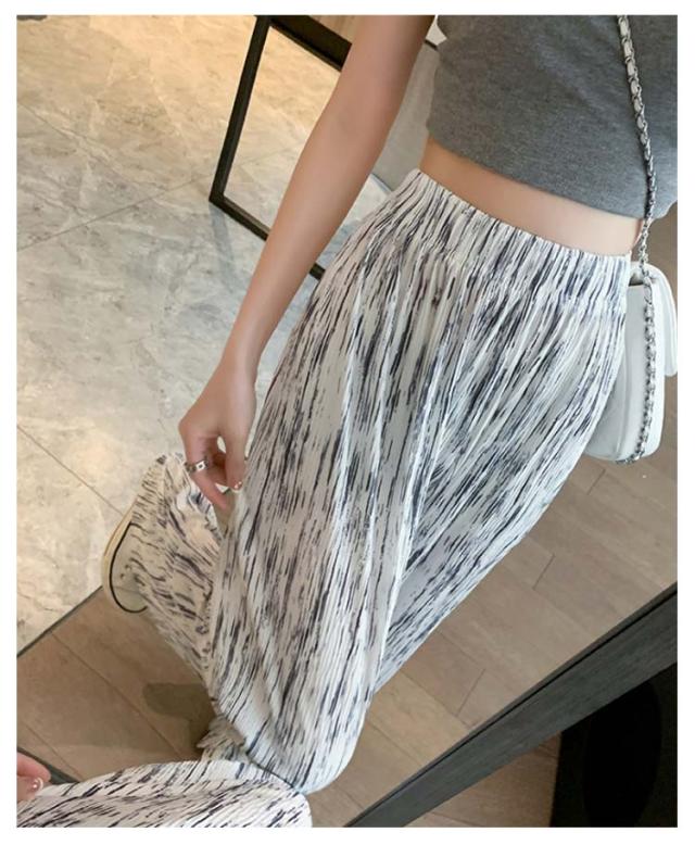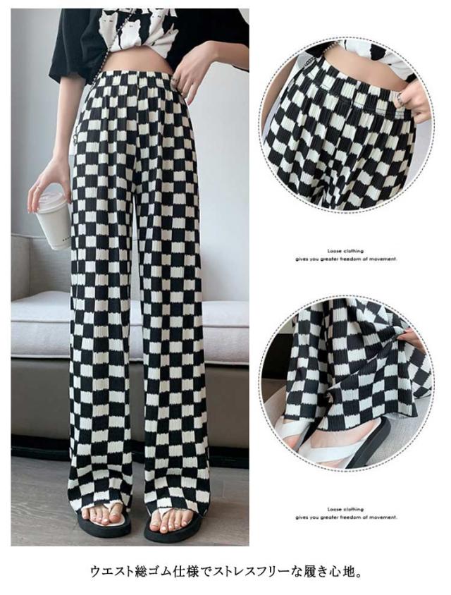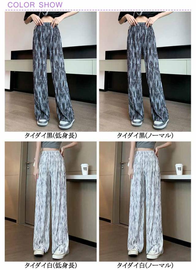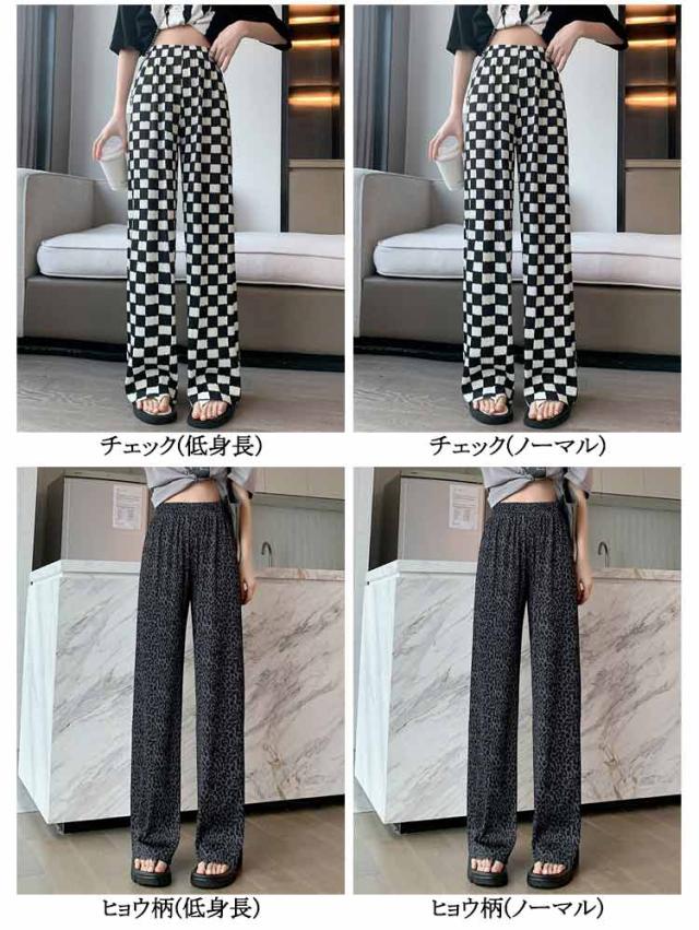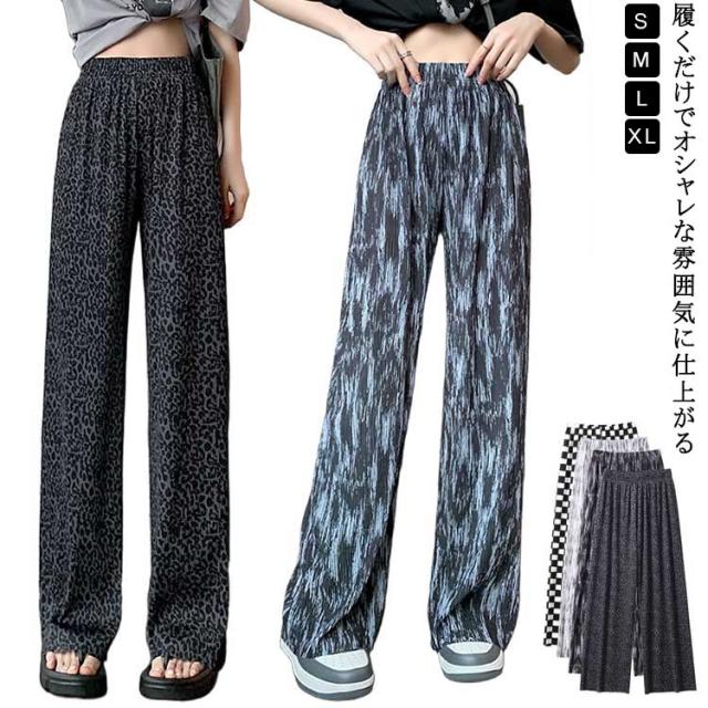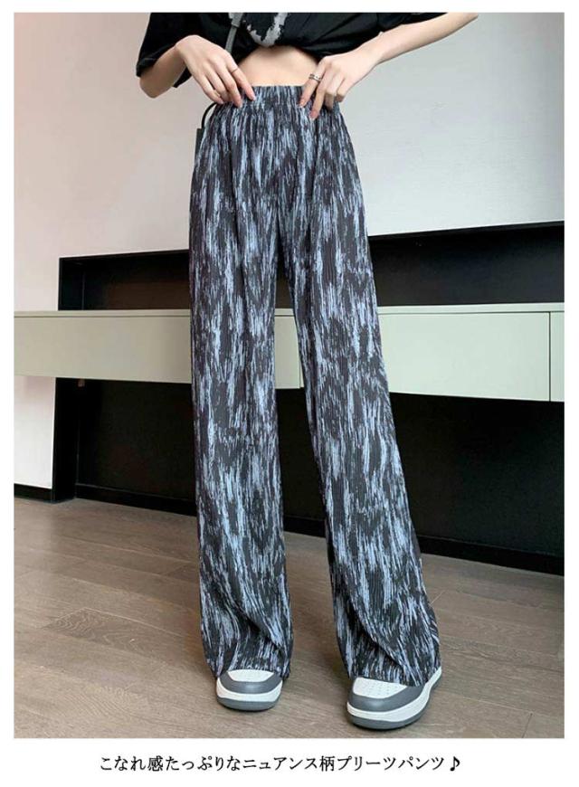 ウエスト 低身長 レディース ウエスト ハサミで切れる 選べる着丈 プリーツパンツ レディース ロングパンツ 涼しい ワイドパンツ ストレートパンツ プリーツパンツ イージーパンツ 柄 柄パンツ 夏 ワイドパンツ