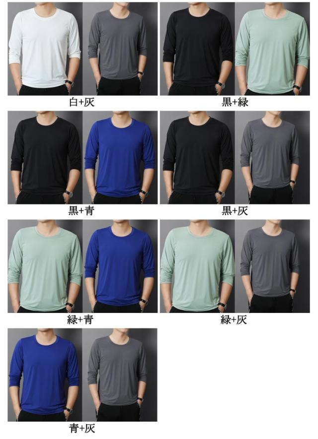 春夏 メンズ インナーシャツ ストレッチ 2枚セット サッカー アンダーシャツ インナーウェア 接触冷感 インナーシャツ 作業服 通気性 速乾 スポーツ トレーニングウェア ゴルフ 丸首 野球 バイク 釣り キャンプ 大きいサイズ