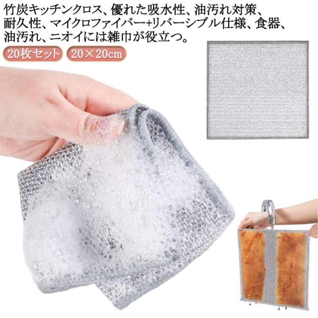 両面使用 金属ワイヤー ワイヤーふきん かきとる リバーシブル20×20cm竹炭キッチンクロス 20枚組ふきん メッシュ 傷を着けずに 竹炭両面金属クリーニングクロス 食器洗い 金属ふきん ワイヤーふきん 乾湿両用 ワイヤーふきん 吸水性 鋼食器洗い布 クロス 多目的 家庭用