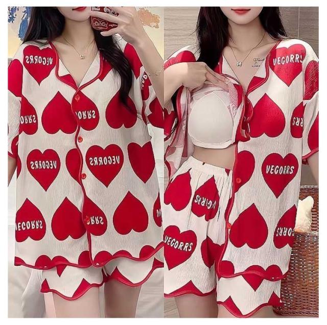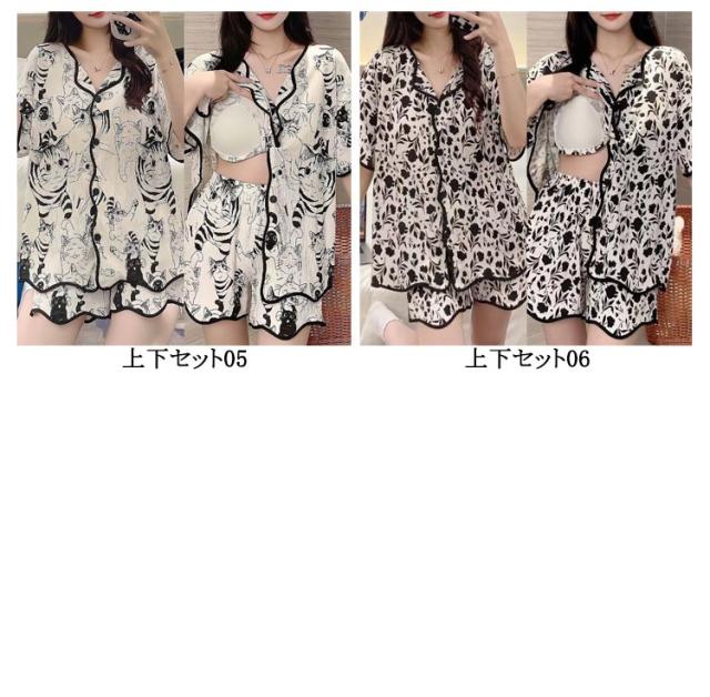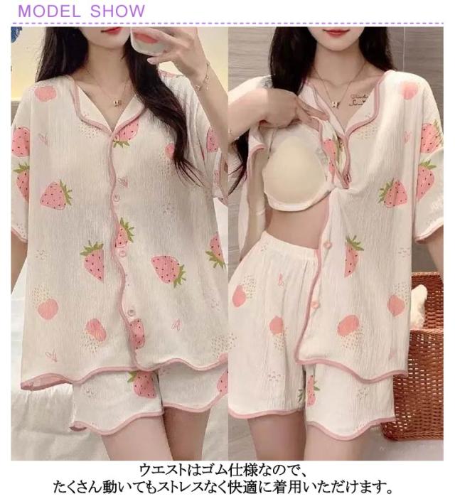 半袖 前開き ショートパンツ カップ付き パジャマ 部屋着 涼しい 女性 ルームウェア 大きいサイズ かわいい 2点セット 夏 半袖 ナイトウェア 可愛い 女の子 上下セット ウエストゴム 婦人用 ズボン ロングパンツ 寝巻き