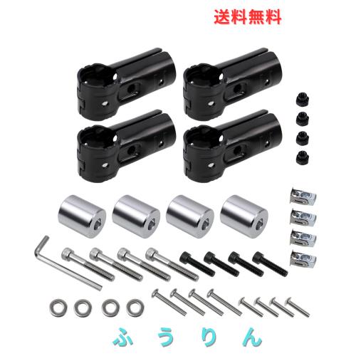 Jeyaic φ28イレクターパイプ用 車用ルーフキャリアバー スペーシアパイプアタッチメント+角穴アダプター4個セット | アルミ製 DIY取り付