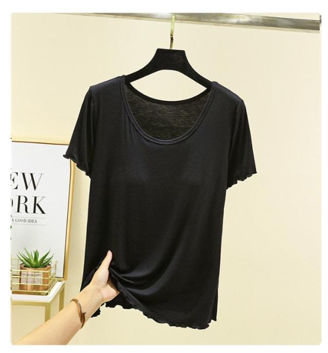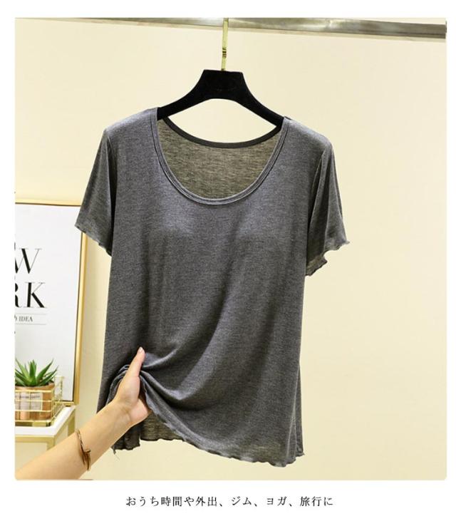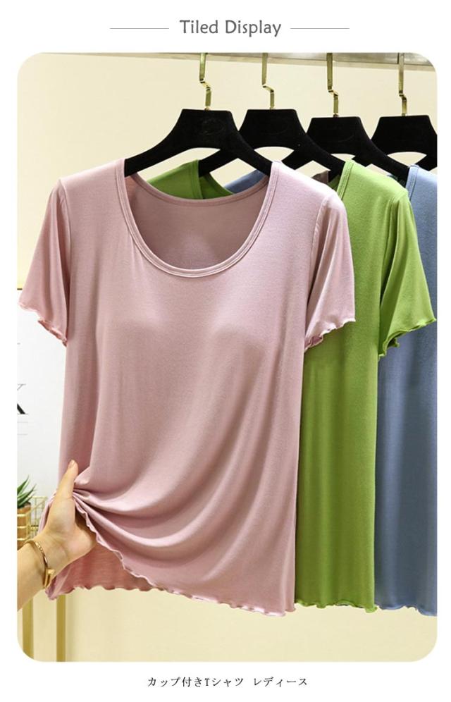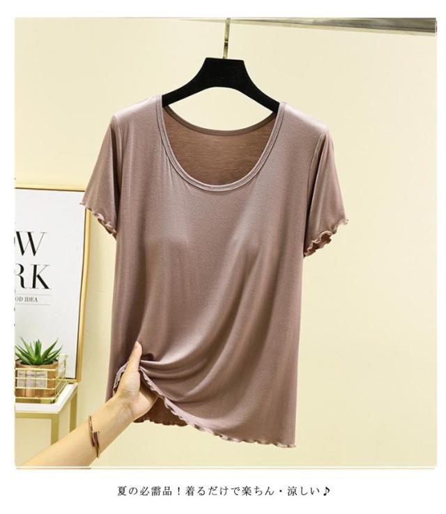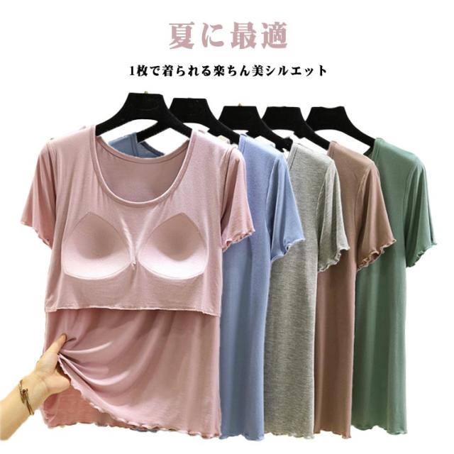 半袖 レディース カップ付きTシャツ ブラトップ tシャツ 無地 インナー モダール素材 大きいサイズ シンプル ゆったり カップ付きTシャツ パジャマ ルームウェア