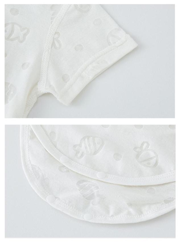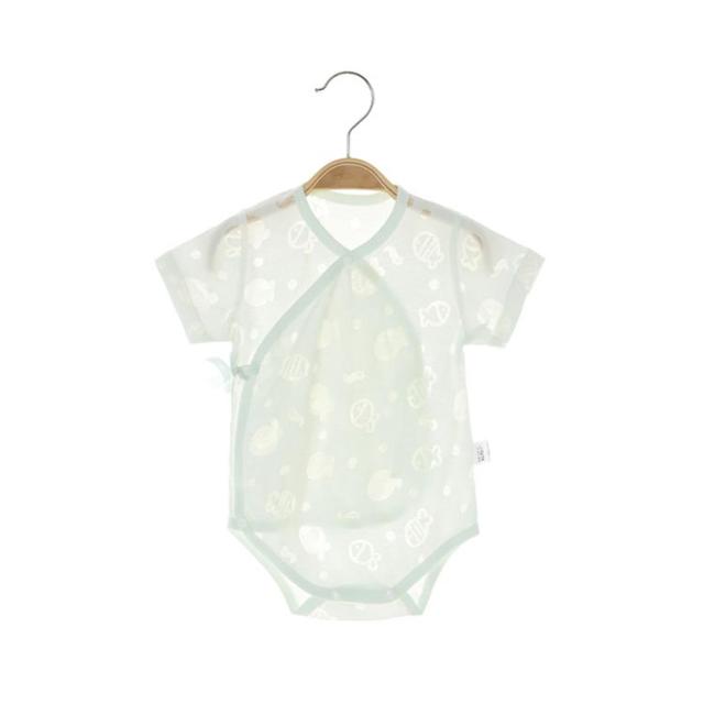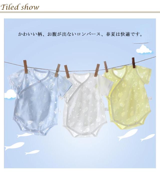 | 夏に快適!薄手のロンパース かわいい柄、お腹が出ないロンパース、春夏は快適です。 寝かせたままのお着替えもラクチンなサイド紐結び全開きタイプで、肌着としてはもちろん、お部屋着としても大活躍の人気アイテムです。 肌に優しい上質な綿コットン生地、蛍光剤を使用してないので、新生児でも安心してお使いいただけます。 | |