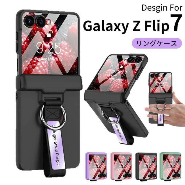 galaxy z flip7 ケース galaxy z flip 7 fe 液晶保護フィルム付き リストバンド リング付き 折りたたみ おしゃれ 男女兼用 人気 PC 弾力バンド galaxy z flip6 ケース 軽量 耐衝撃 ワイヤレス充電 一体型カバー ギャラクシー Z フリップ6 ケース