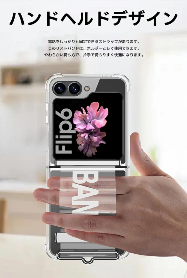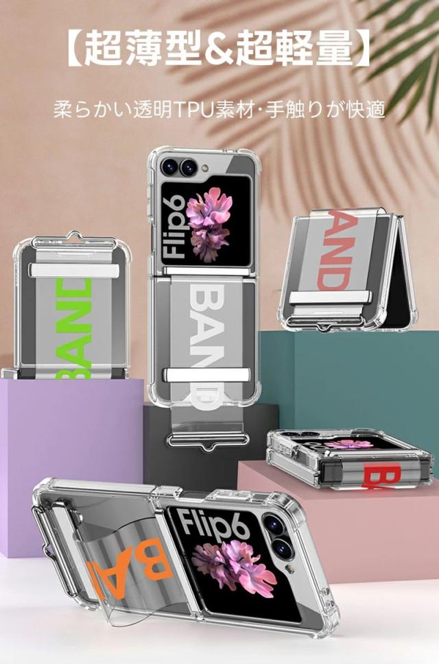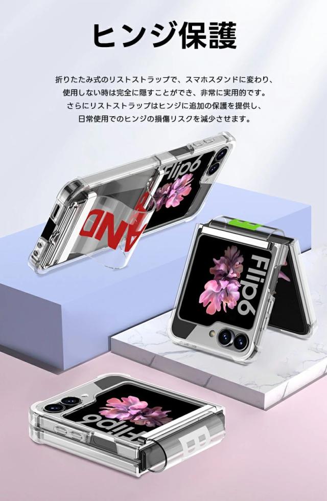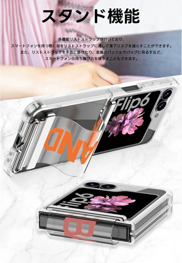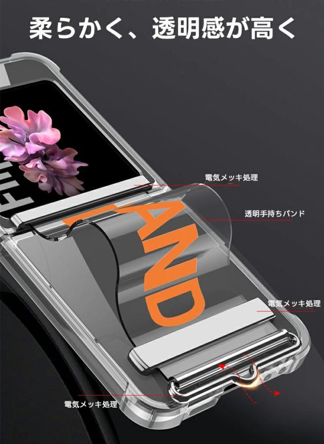 galaxy z flip7 fe ケース galaxy z flip6 ケース ギャラクシー Z Flip5 ケース ヒンジ Galaxy Z Flip4ケース 携帯電話 折り畳み フリップ 透明 薄型 軽量 ソフトTPU シリコン エアバッグ リストバンド カバー ワイヤレス充電 レンズ保護 ヒンジ保護 おしゃれ 落下防止