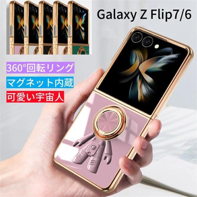 Galaxy Z Flip7 SC-55F ケース メッキ 宇宙人 360°回転リング マグネット 車載ホルダーに対応 ギャラクシー Z フリップ7 フリップ6 ケース 背面 かわいい 薄い 軽い 持ちやすい スタンド Galaxy Z Flip6 カバー 背面 リング おしゃれ ソフト カメラ保護 メッキ 柔軟 耐衝撃