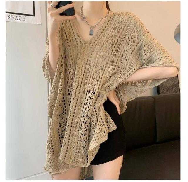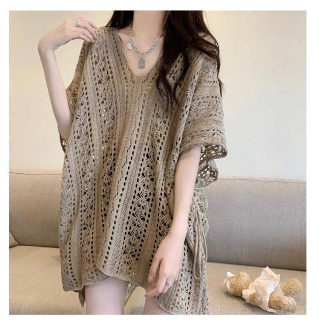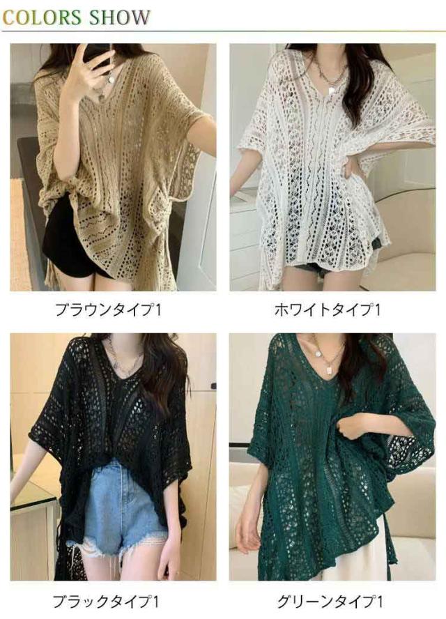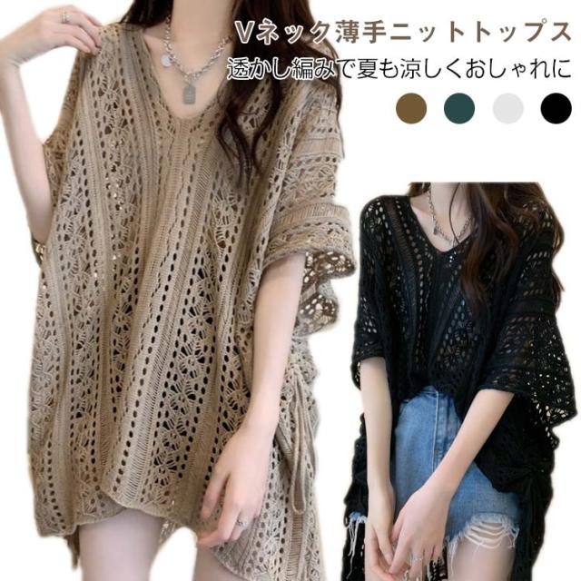 シースルー 透かし編みニット プルオーバー レディース レディース サマートップス サマーニット Vネック トップス ゆったり 夏用 半袖 カジュアル