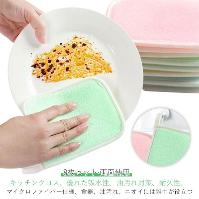 ふきん タワシシート リバーシブルキッチンクロス 8枚セット スポンジ キッチンタオル 食器洗い用ふきん 傷を着けずに 竹炭キッチンクロス 食器拭き フキン 吸水性 フキン 油汚れ対策 洗浄力 両面使用 厚手 キッチンクロス コンロ レンジ