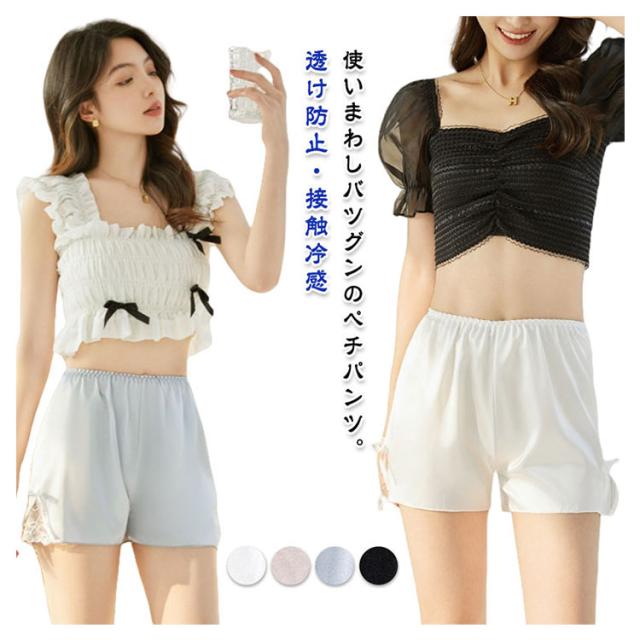 フリル ペチパンツ パンツ ルームウェア ペチコート ペチパンツ インナーパンツ ペチパン レース パンツ サイドリボン 大きいサイズ ゴム ペチパンツ キュロット 裾 透け防止 透け防止 ペチパン ルームウェア ショートパンツ ブラック ホワイト グレー