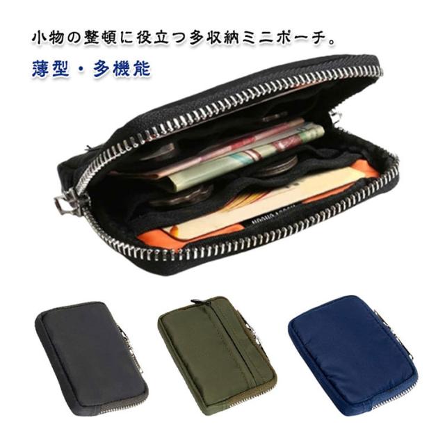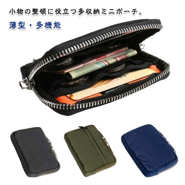 マルチ 小銭入れ メンズ マルチポーチ ミニポーチ ファスナー付き ポーチ 薄型 多機能 小物入れ マルチ カード入れ ミニマム キーケース ミニウォレット ミニ財布 コインケース コンパクト スリム 使いやすい ブラック ダークグレー カーキグリーン