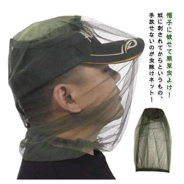 蚊 ヘッドネット メッシュ 対策 顔 カバー 虫除けネット 防虫ネット メッシュ モスキートネット 帽子用 キャンプ モスキート フェイスガード アウトドア 登山 帽子に被せて簡単虫よけ!虫よけネット ガーデニング
