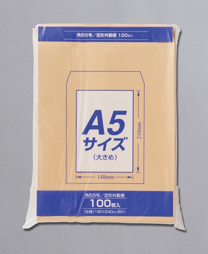 A5サイズ(ちょっと大きめ)に最適なクラフト封筒です。