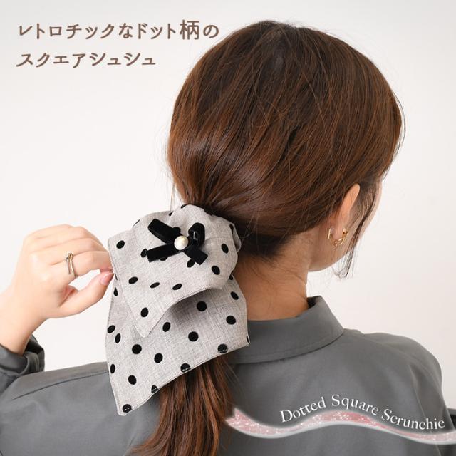 新作 シュシュ ヘアゴム レディース おしゃれ 子供 キッズ スクエア リボン ドット パール 大きめ ヘアアクセサリー ヘアアレンジ 髪留め