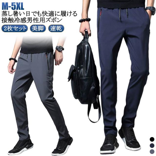 メンズ 薄手 おしゃれ パンツ 2枚セット ひんやり 美脚 スキニーパンツ ゴルフパンツ スキニーパンツ ロングパンツ 真ん夏 夏物 長ズボン 2枚セット 速乾 蒸れない スキニー チノパン 通気 接触冷感 無地 カジュアル スポーツ 春秋 クール感 送料無料 大きいサイズ
