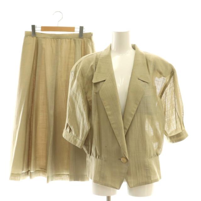 【中古】レリアン Leilian スーツ セットアップ リネン混 半袖ジャケット スカート ロング 13+ ベージュ レディース