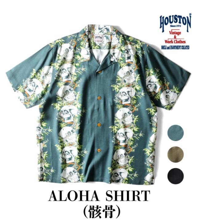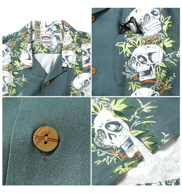 Houston ヒューストン ALOHA SHIRT (骸骨) アロハシャツ 半袖シャツ 柄シャツ 総柄 リゾート ビーチ 海 メンズ レディース 開襟 ドクロ ガイコツ41201 ゆうパケット1点まで送料無料 SALE