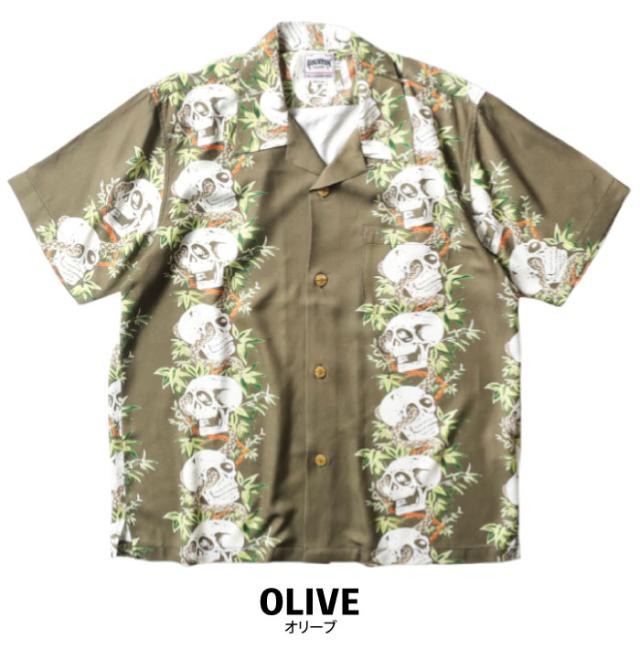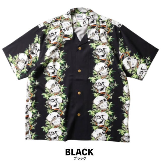 骸骨を組み合わせたボーダーパターンがデザインされた、春夏定番のアロハシャツシリーズです!