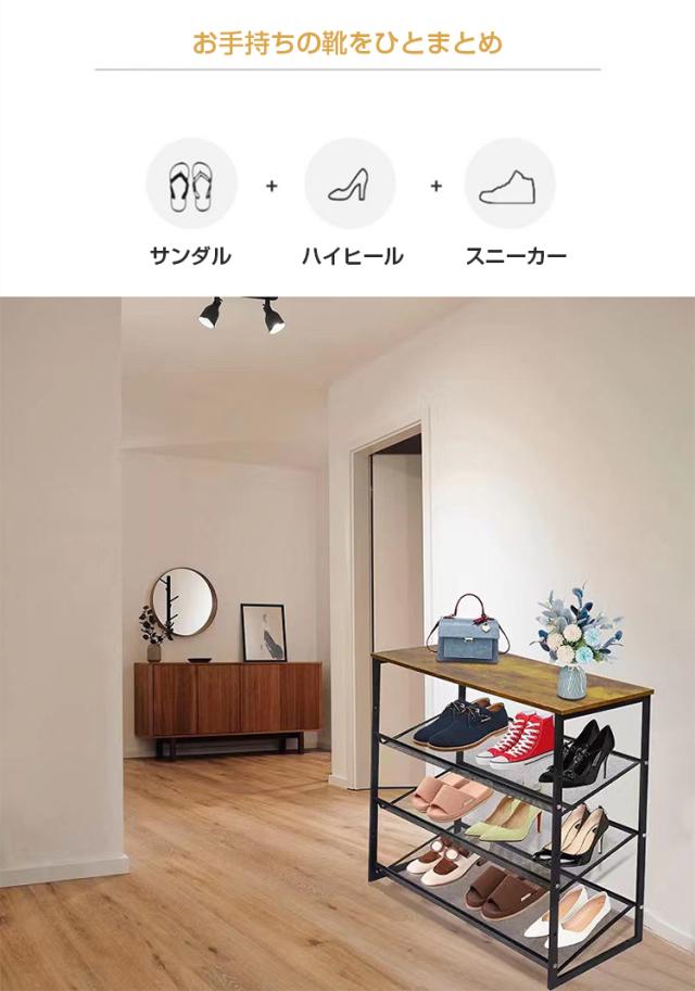 たっぷり収納できる多段タイプ。スニーカーはもちろん、男性用の革靴やヒールのあるパンプスなどもきれいに収まります