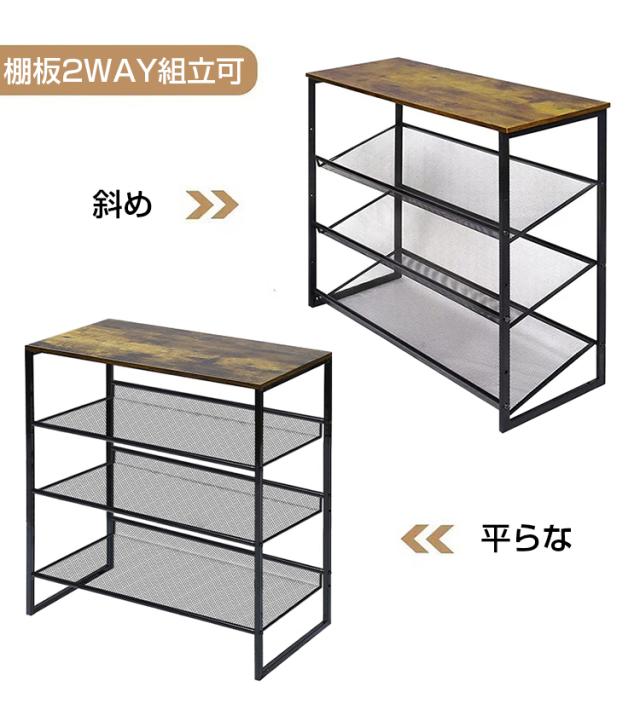 ご自分のお好みにより、用途に合わせて棚板は平らなや斜め2WAYで組み立て可能となります。