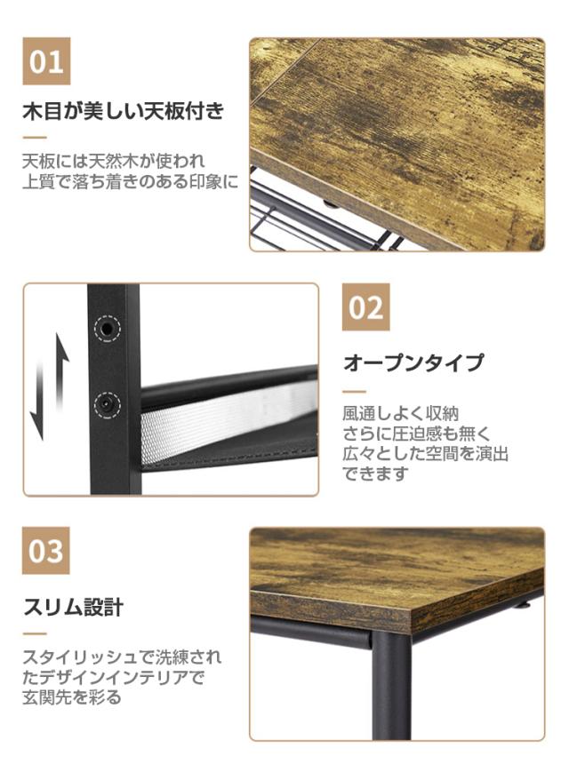 玄関にあふれる靴を省スペースに収納でき、ディスプレイも楽しむことができます。フレームだけの構造なので通気性がよく、靴を取り出しも簡単です。