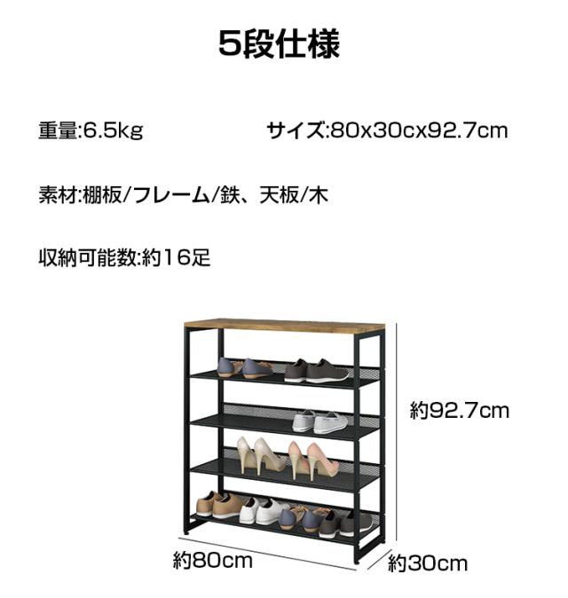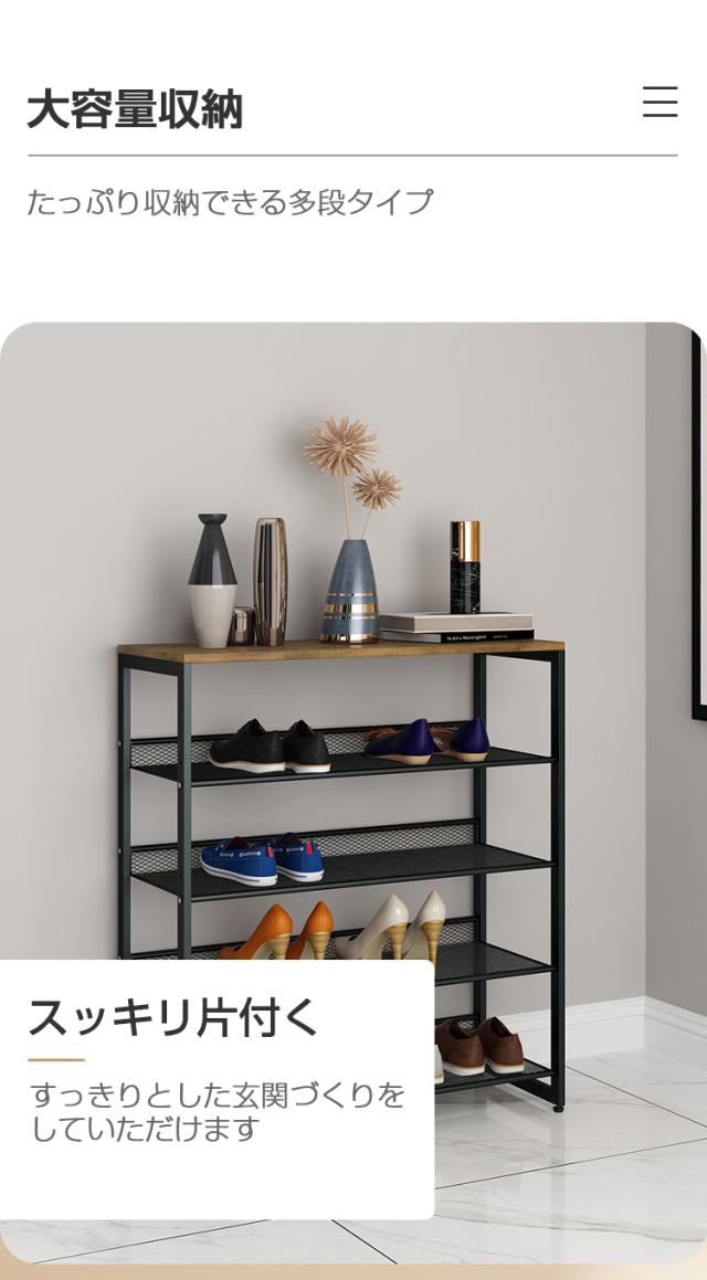 シューズラック スリム 5段 下駄箱 玄関収納 靴ラック 靴箱 収納 おしゃれ 靴入れ オープン収納 棚 収納棚 本棚 収納ラック リビング キッチン