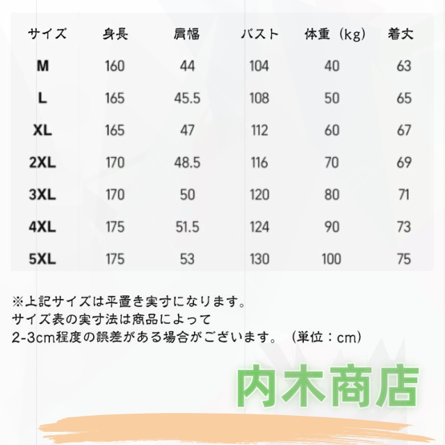 | サイズ | M L XL 2XL 3XL 4XL 5XL 6XL 7XL 8XL |