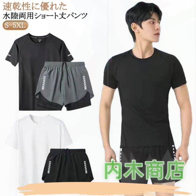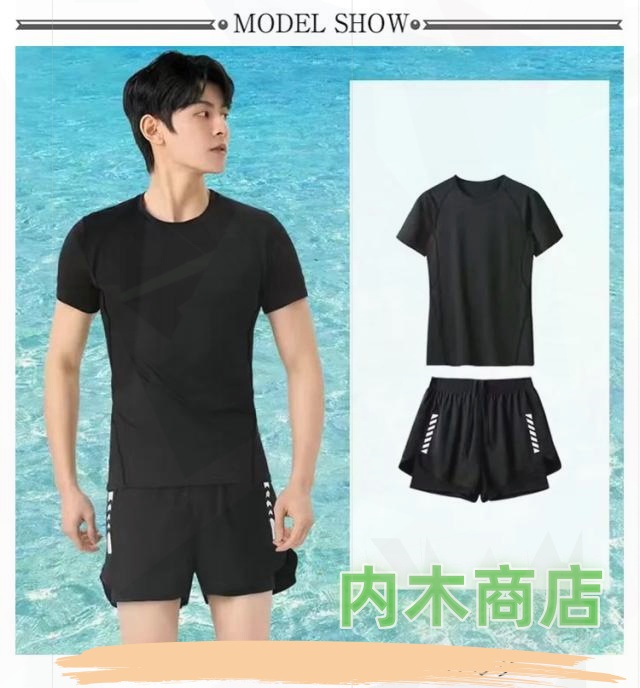 上下セット おしゃれ 水着 水着 サーフパンツ 上下セット 半袖 ラッシュガード フィットネス水着 上下セット セパレート フィットネスウェア 大きいサイズ フィットネス スポーツ セット メンズ メンズ 男性 半袖 ラッシュガード 体型カバー 水陸両用 ビーチ