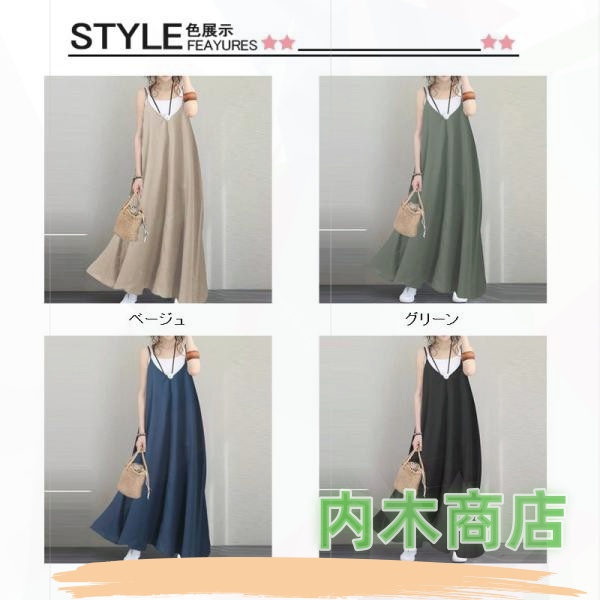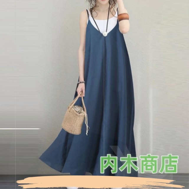 レディース 夏 春 キャミワンピ ロングワンピース ジャンパースカート Aラインワンピース ゆったり サロペットワンピース 無地