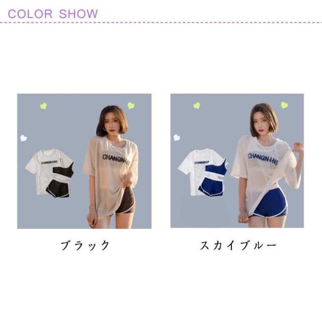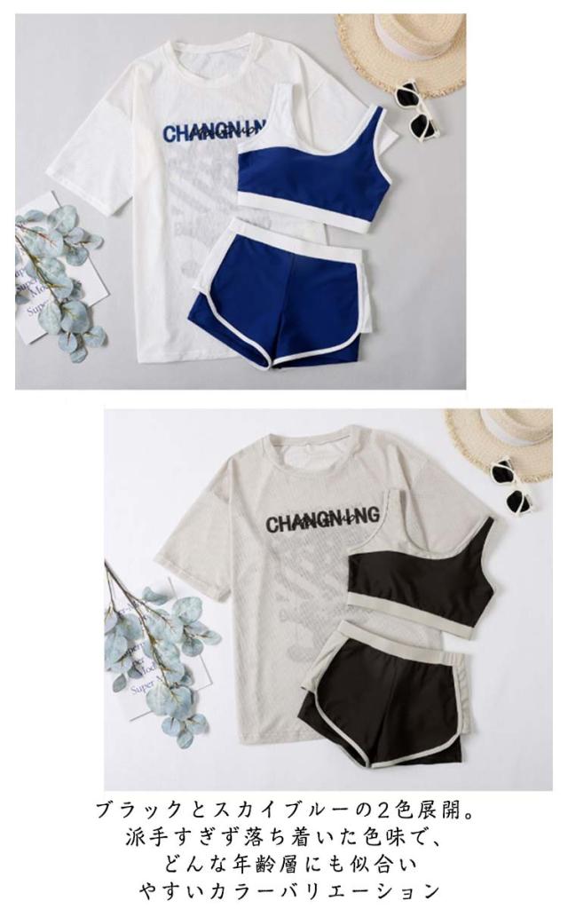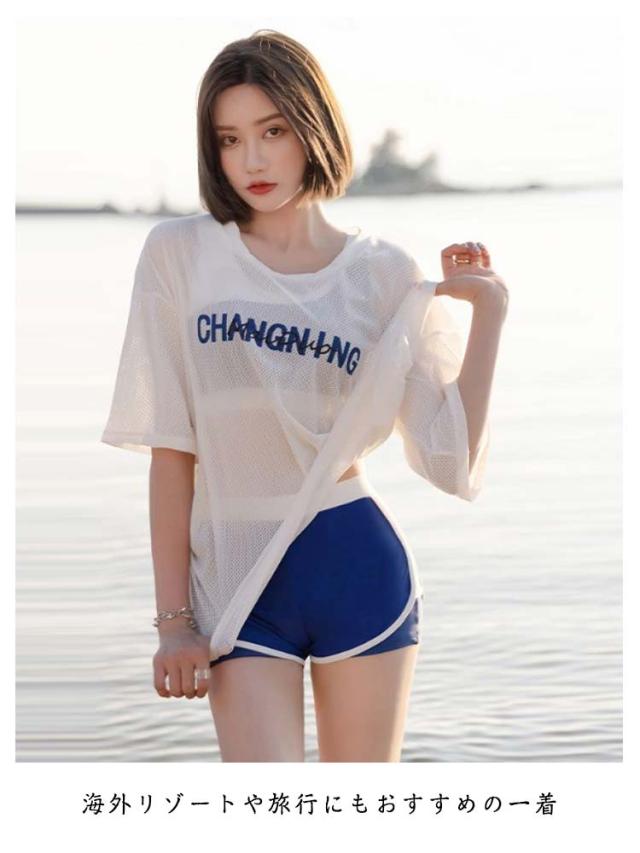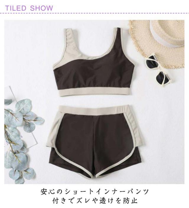 セパレート水着 ショートパンツ セパレート水着 3点セット フィットネス水着 スポーツ水着 カバーアップ付き水着 胸パッド付き 大人カジュアル ゆったり トップス付き リゾート水着 可愛い ビーチ用水着 10代 20代 ママ 海水浴用