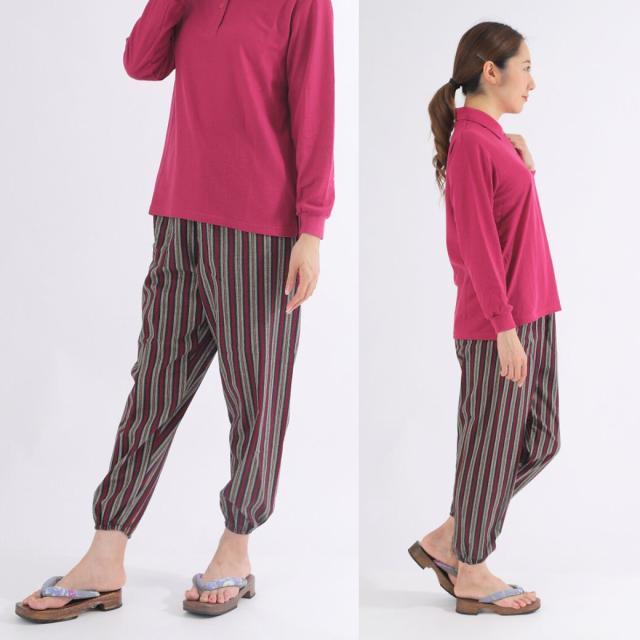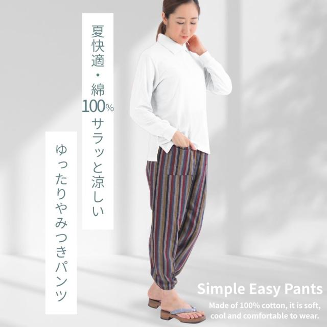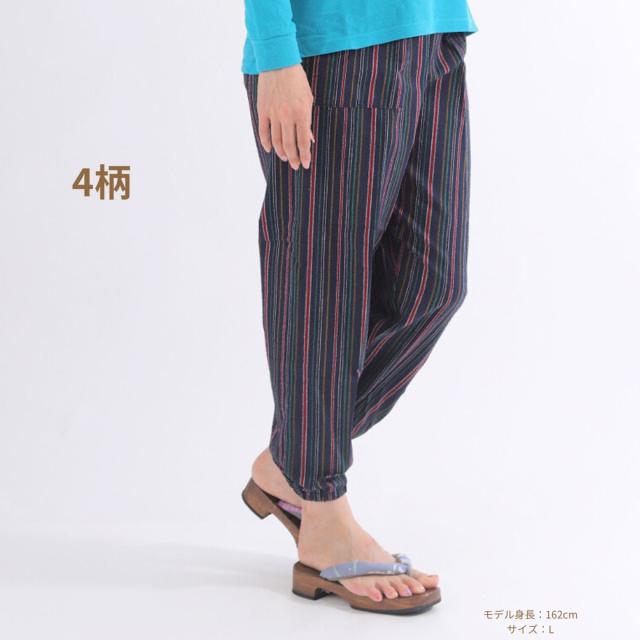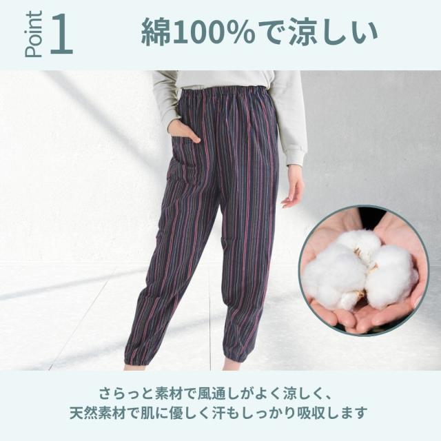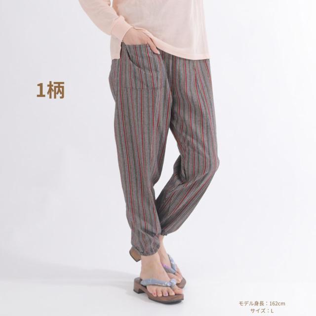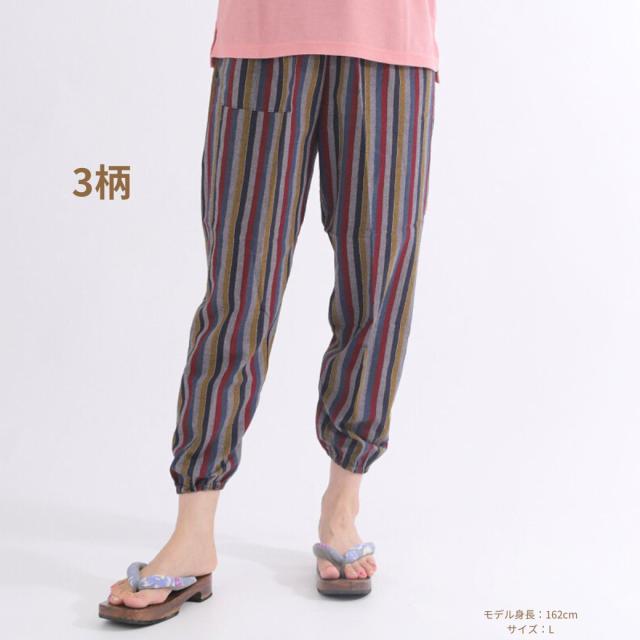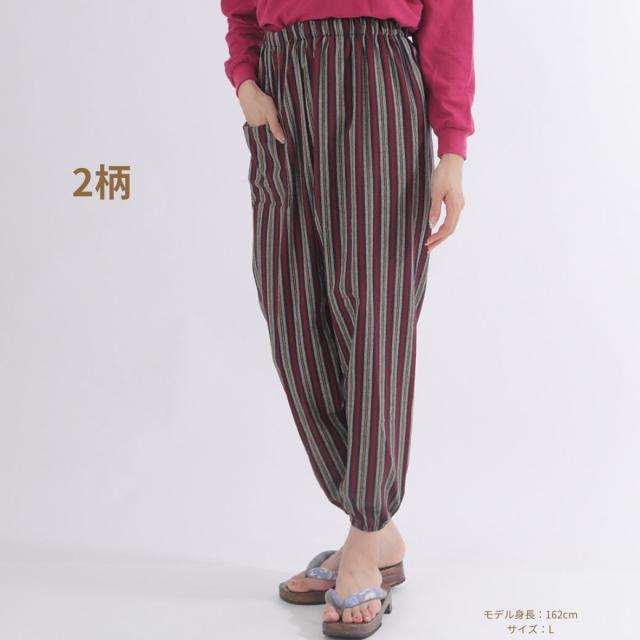 シニアファション パンツ レディース ズボン おばあちゃん 80代 70代 柔らか ウエストゴム 人気 総ゴム 日本製 もんぺ サルエルパンツ イージーパンツ しじら織 和風 敬老の日