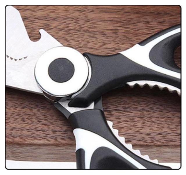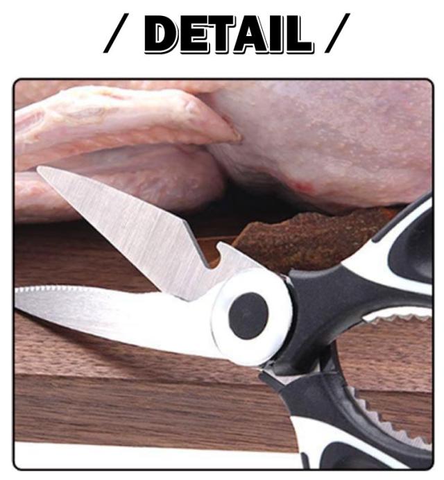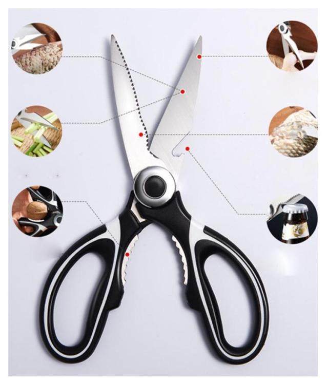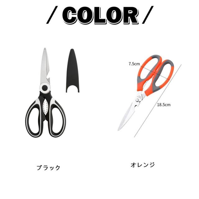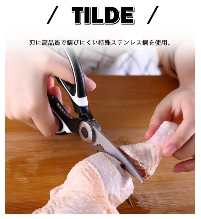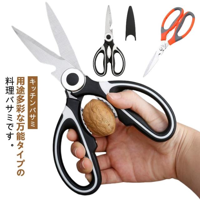 | 【キッチンバサミ】 用途多彩な万能タイプの料理バサミです。 刃に高品質で錆びにくい特殊ステンレス鋼を使用。 刃はマイクロエッジング加工を施され、ハンドルは抗菌加工で衛生的。 カニなど硬いものにも使える。 | |
