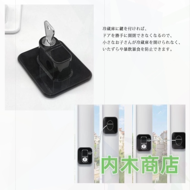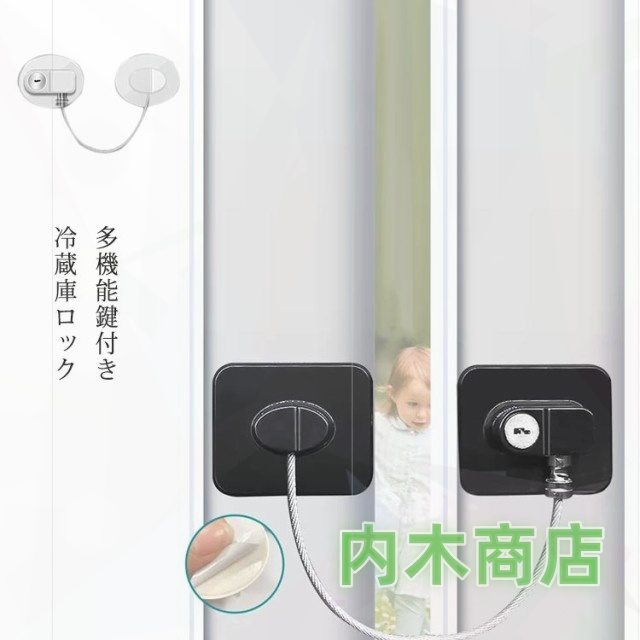 | 多機能鍵付き冷蔵庫ロック ワイヤー部分もステンレス製で大人の力でも開けられない頑丈さが魅力。 粘着テープで貼り付けるだけ!ネジやドライバーは不要で、誰でも簡単に設置できるのがポイント。 冷蔵庫に鍵を付ければ、ドアを勝手に開閉できなくなるので、小さなお子さんが冷蔵庫を開けられなく、いたずらや暴飲暴食を防止できます。 冷蔵庫はもちろん、クローゼットや棚、ドア、窓などのロックにも使えます。 | |
