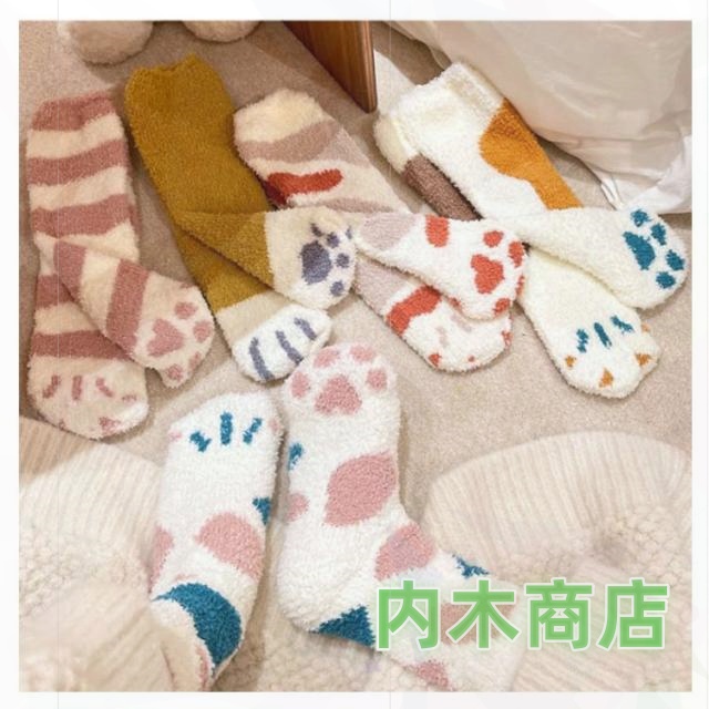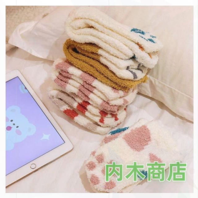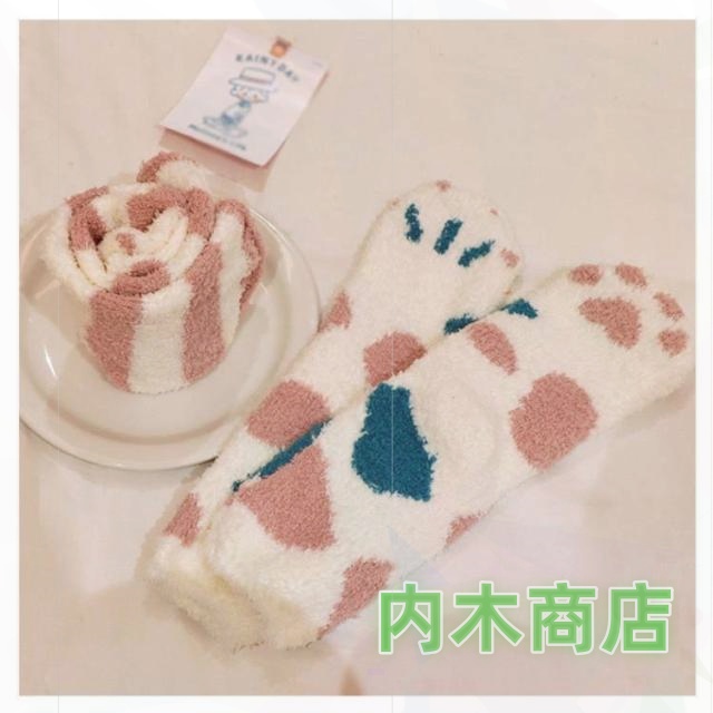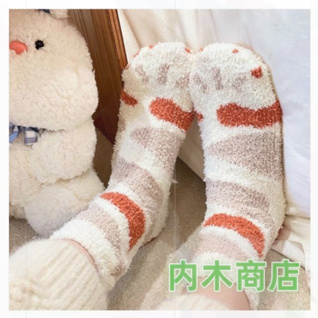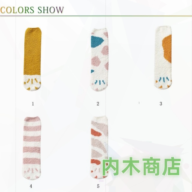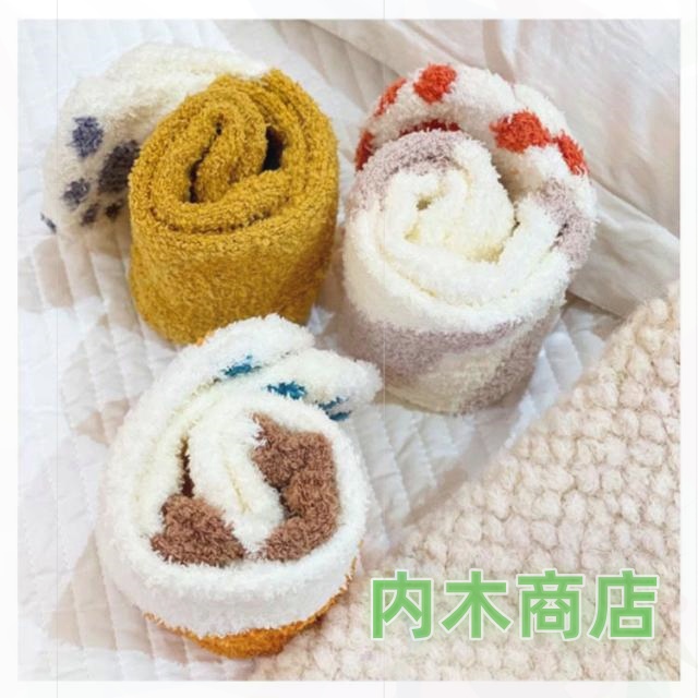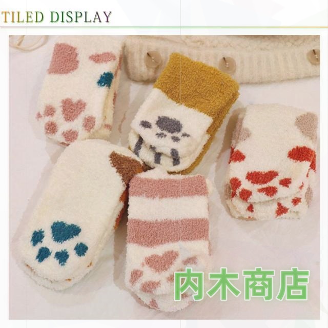 | 寒い時期には欠かせないモコモコルームソックス。 ふわふわ素材で足元ぼかぽか、程よい厚みで優しく足を包みます。 キュートな猫足モチーフデザインでお部屋の中でもかわいく! もこもこふわふわ、ずっと触っていたくなるような肌触り。 伸縮性よく締め付け感が少ないから、おうちでのリラックスタイムやおやすみ用のソックスにピッタリ。 | |