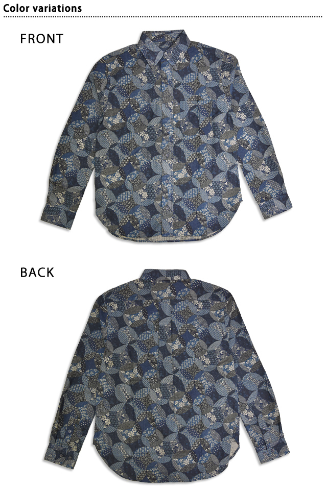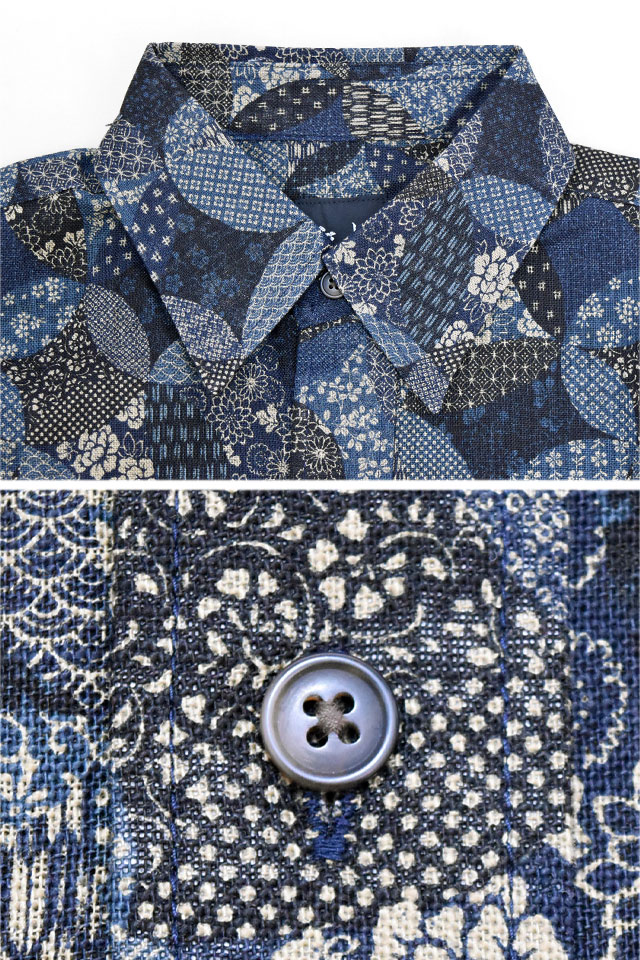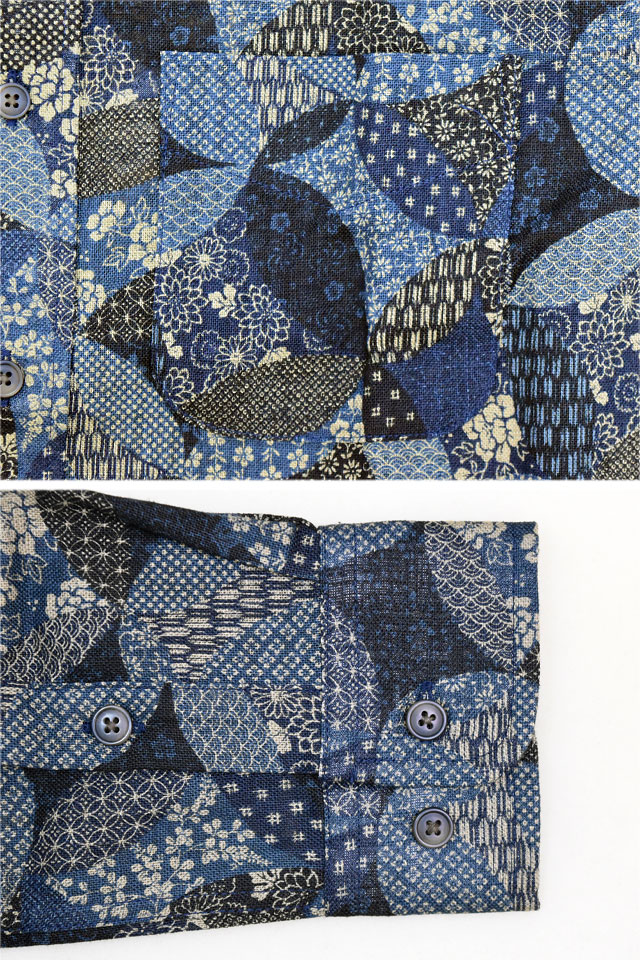 | 古布調長袖レギュラーカラーシャツ「変わり七宝」◆衣櫻 KSK-M09672 | |||||||||||||||||||||||||