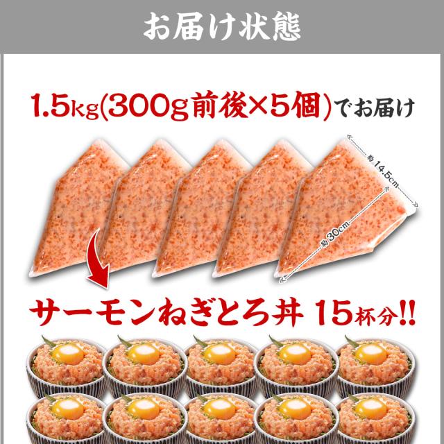 サーモンねぎとろ 1.5kg(300g前後×5個) 業務用 鮭 さけ サケ たたき タタキ ネギトロ 海鮮丼 冷凍 時短 簡単 タイパ 親子丼 サーモンたたき 個包装 寿司 冷凍食品 海鮮 トラウト