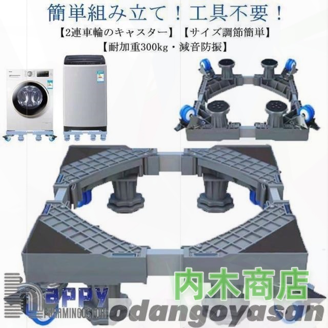 洗濯機 置き台 洗濯機台 キャスター付き 幅/奥行41-64cm 4足8輪 洗濯機 冷蔵庫 かさ上げ 台 洗濯機パン 排水パン 引っ越しツール 360