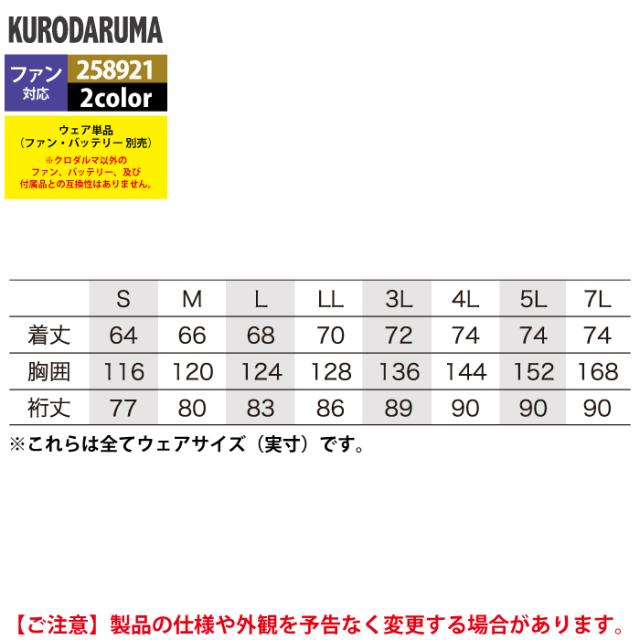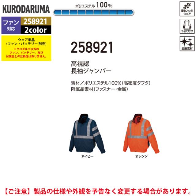 ファン付きウェア (服のみ) クロダルマ 作業服 春夏 258921 高視認長袖ジャンパー 3L-5L 作業着