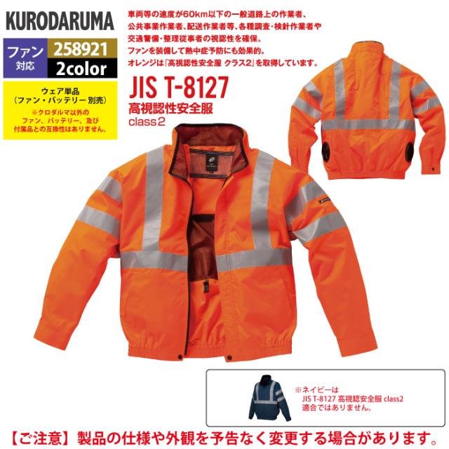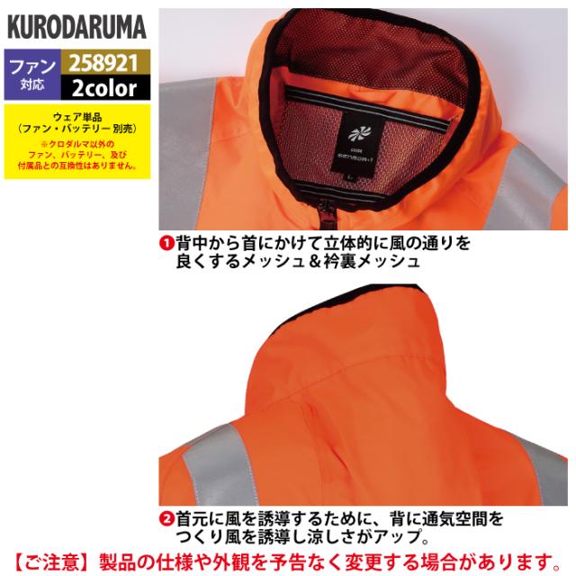 ファン付きウェア (服のみ) クロダルマ 作業服 春夏 258921 高視認長袖ジャンパー S-LL 作業着