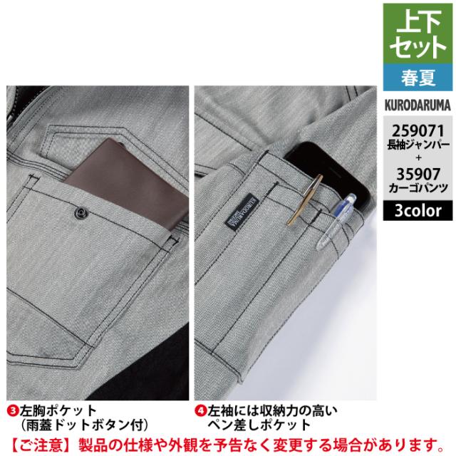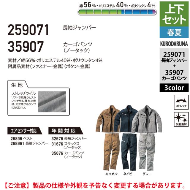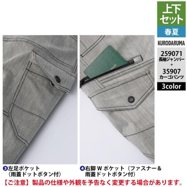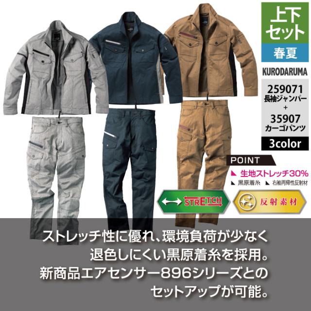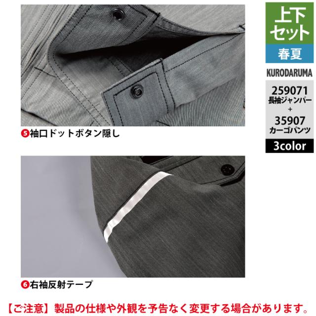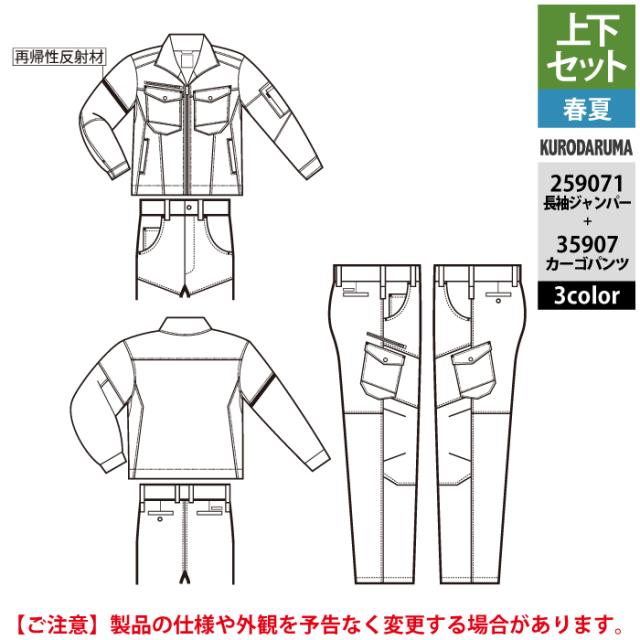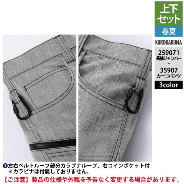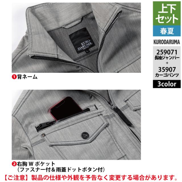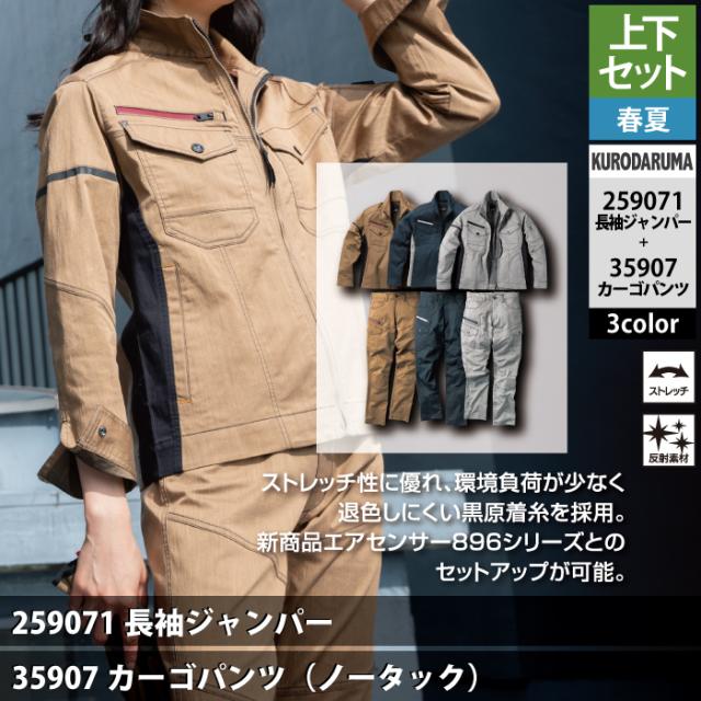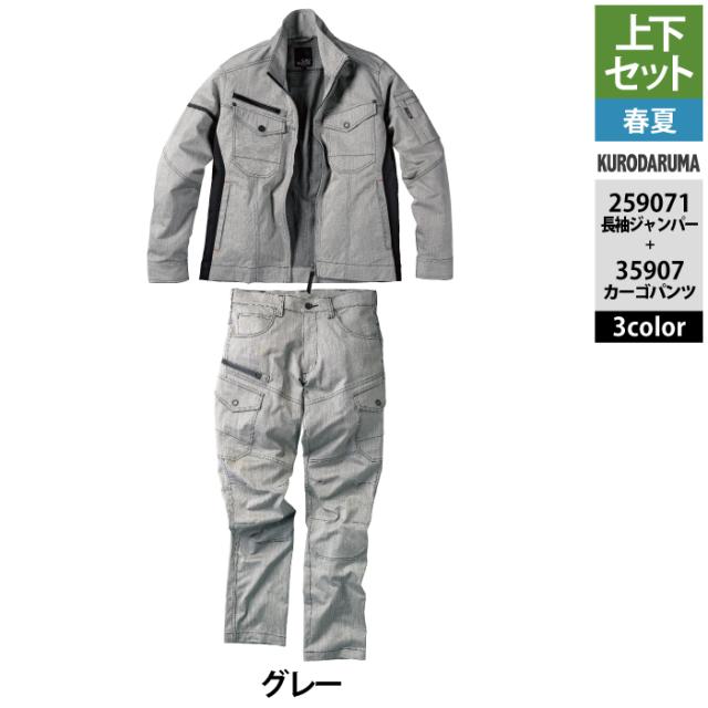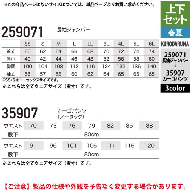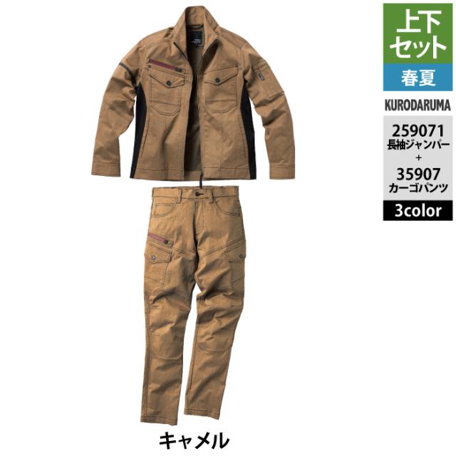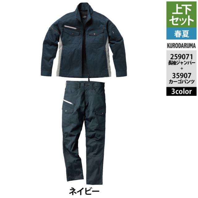 クロダルマ 作業服 上下セット 春夏 259071 長袖ジャンパーSS-3L と 35907 カーゴパンツ 70-10 作業着 作業ズボン