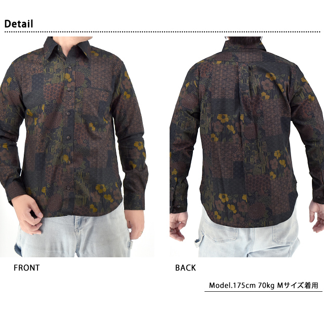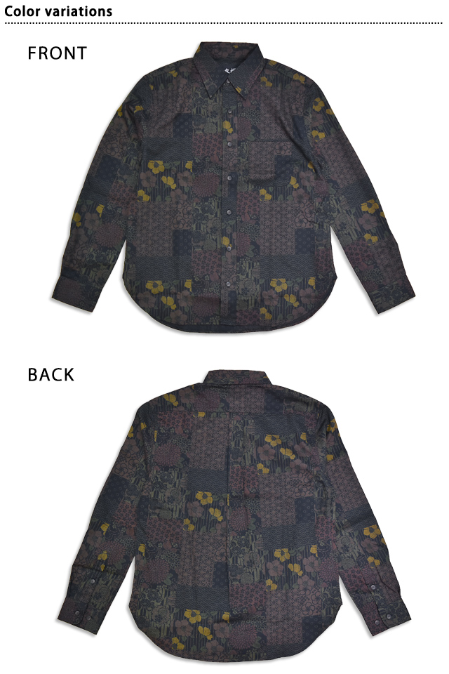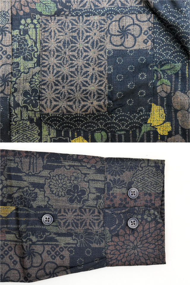 | 抜染加工長袖レギュラーカラーシャツ「古裂パッチワークプリント」◆衣櫻 KSK-M09682 | |||||||||||||||||||||||||
