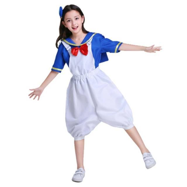 アニメ風のコスチューム、ダックを原型にした海軍スタイルのセーラー学生コスチュームです!服は見た目もデザインもとてもキュートで、黄色い靴下はアヒルの前足のようで、この服を着るとまるでドナルドダックに変身したようです!(黄色い靴下は付属無し、別売り)