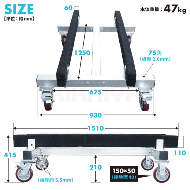 | キャスター | φ150×50mm(接地幅40mm)/ウレタン 固定×2個、自在ブレーキ×2個 |