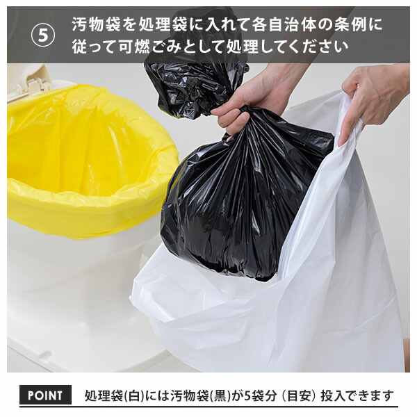 | 材質 | 凝固剤:高分子ポリマー 汚物袋、便座カバー、処理袋:ポリエチレン |
