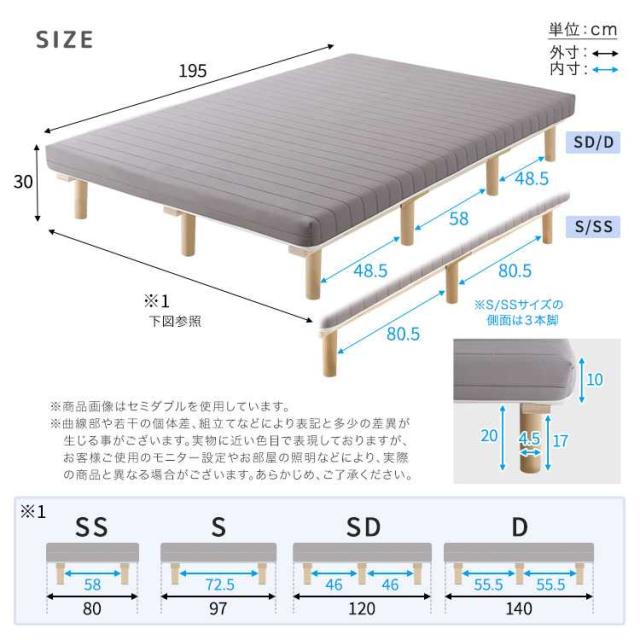 脚付きマットレスベッド セミダブル すのこベッド 脚付きウレタンロールマットレス セミダブルサイズ